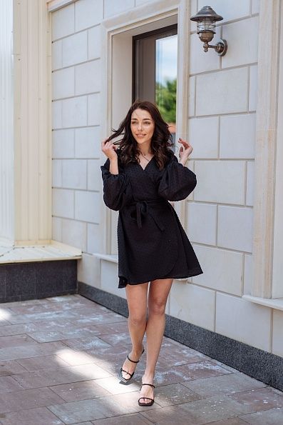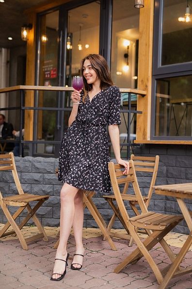 У бренда Mbocharova есть свои варианты стилизации «маленького черного платья». Платье на запах с двойной юбкой, платье с поясом черное в цветочный принт , платье мини сборка с распоркой черное.